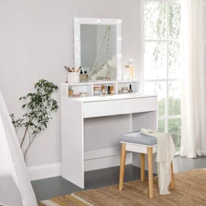 - songmics RDT114W01 Sminkbord med spegel och glödlampor, sminkbord med 2 lådor och 3 öppna fack, sminkbord, modernt, vitt1272 kr